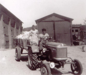 verkocht werd. Op de tractor zitten Gerda en Giel Frissen