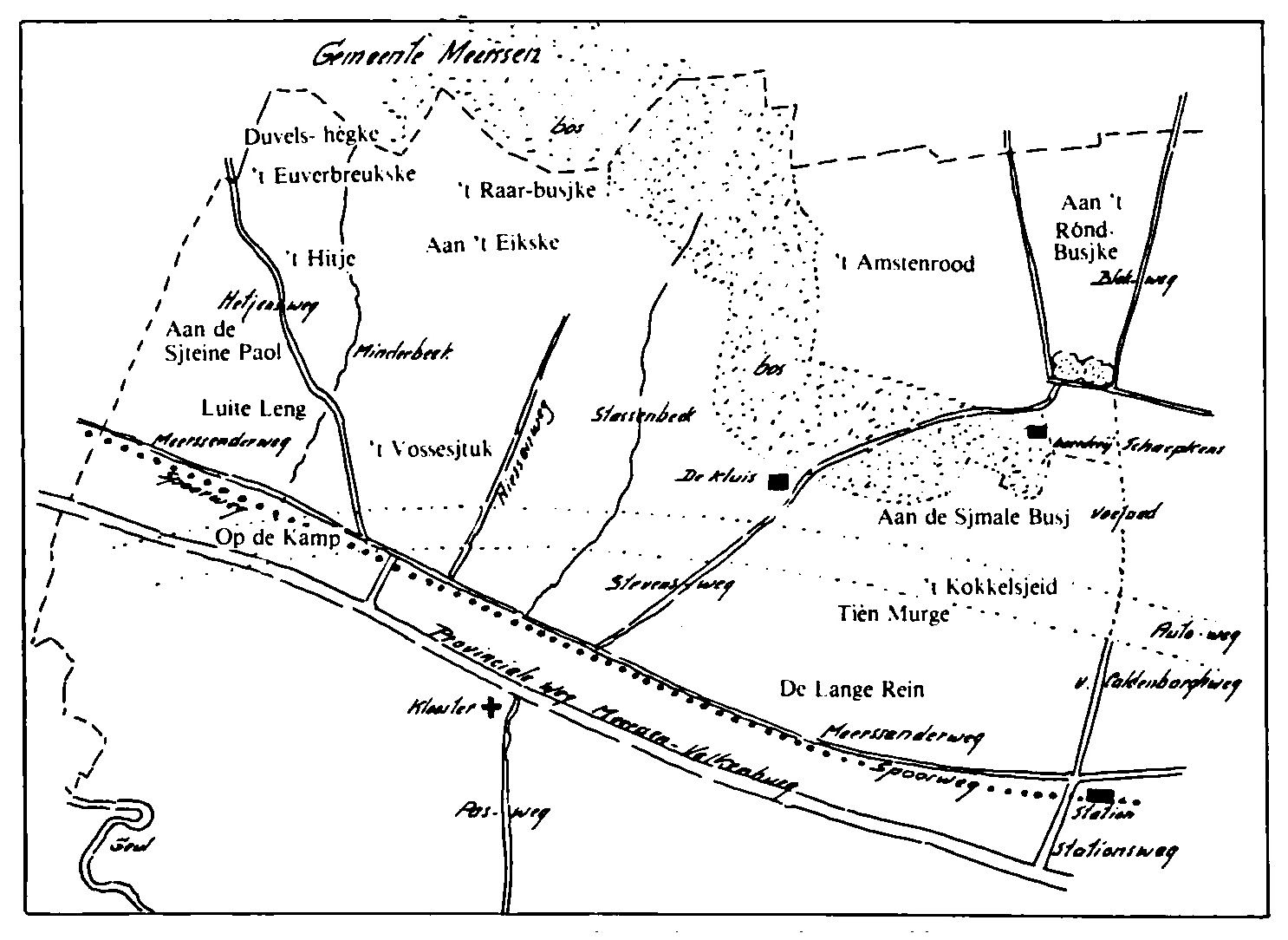 't Hitsje, de Lange Rein, de Tièn Murge, aan de Sjmale Busj,