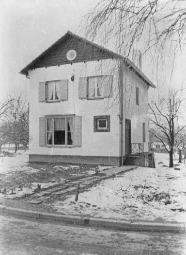 winter (1954/55) na het gereed komen. De voor-tuin is nog een