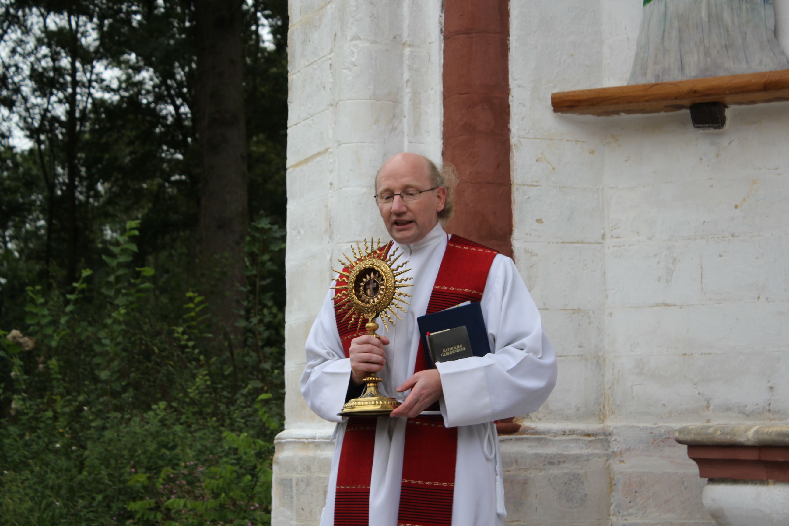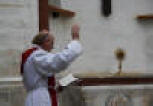 Calvariekapel tijdens een korte plechtigheid door pastoor J.