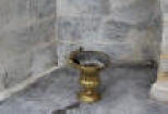 een zitbank en een bord met toelichting naast de kapel