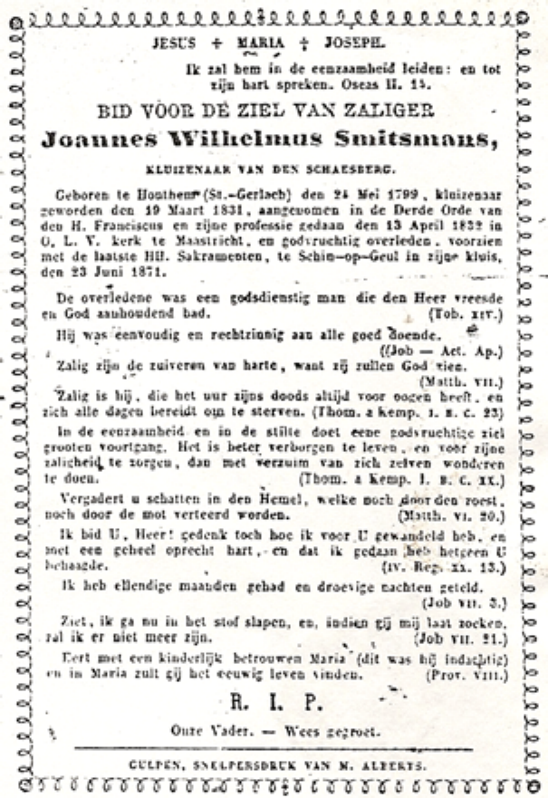 Overzicht van de verzameling bidprentjes van Houthem, Broekhem en