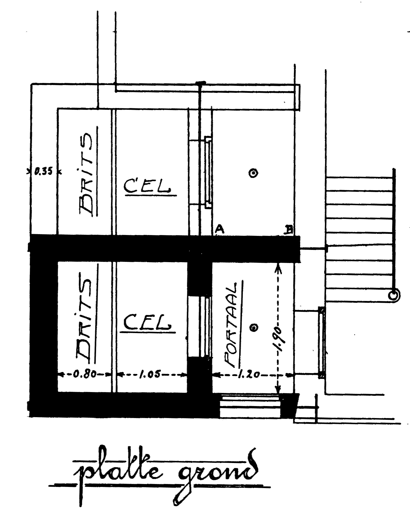 Hoe de gevangenis was ingedeeld is op bijgaande tekening te