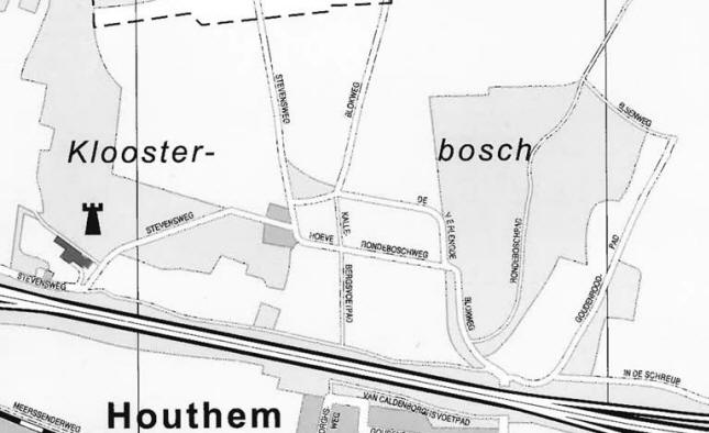 in de noordwesthoek van Houthem, d.w.z. ten noorden van de