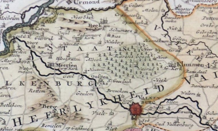 Deze kaart van het hertogdom Limburg werd vermoedelijk uitgegeven door