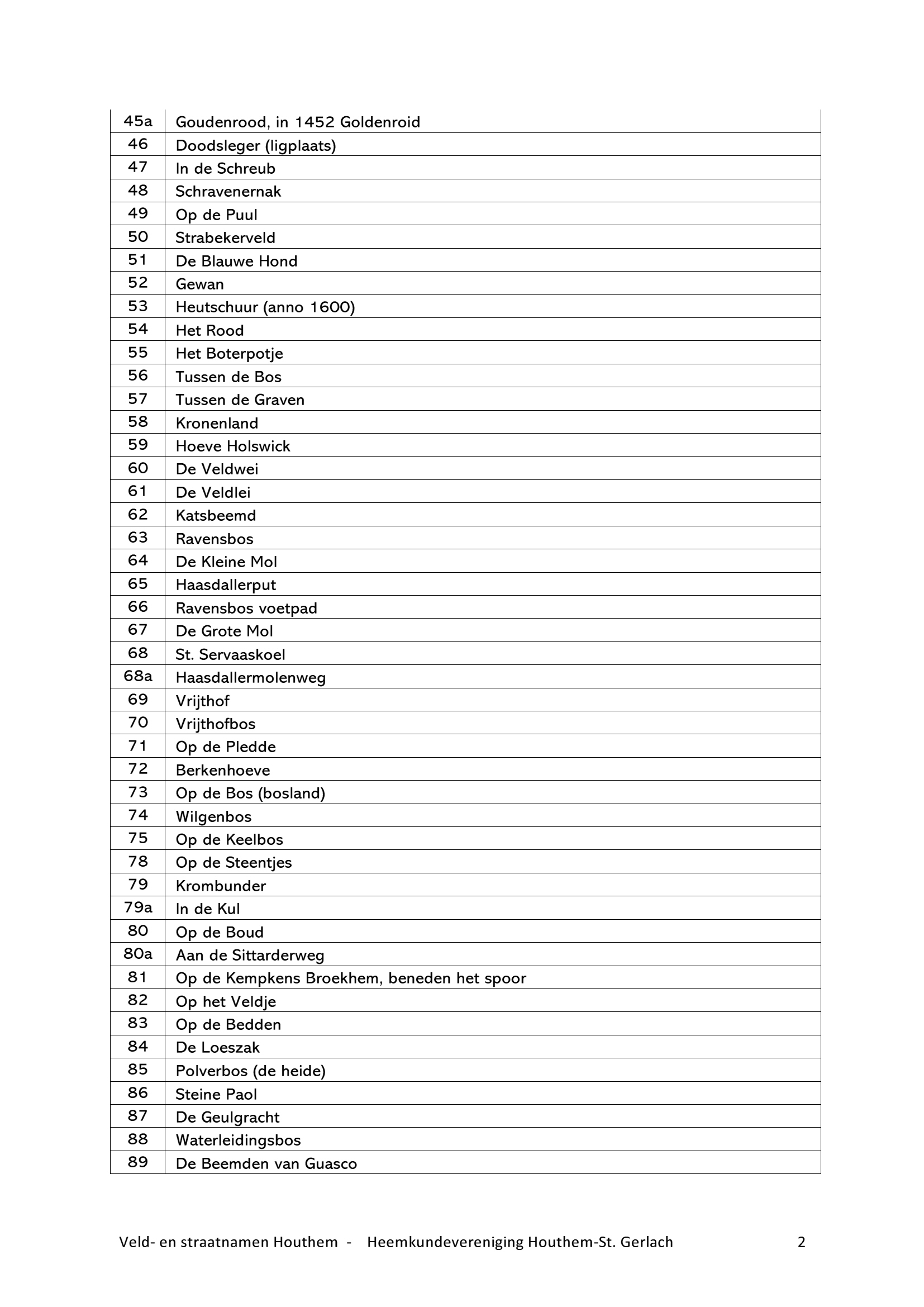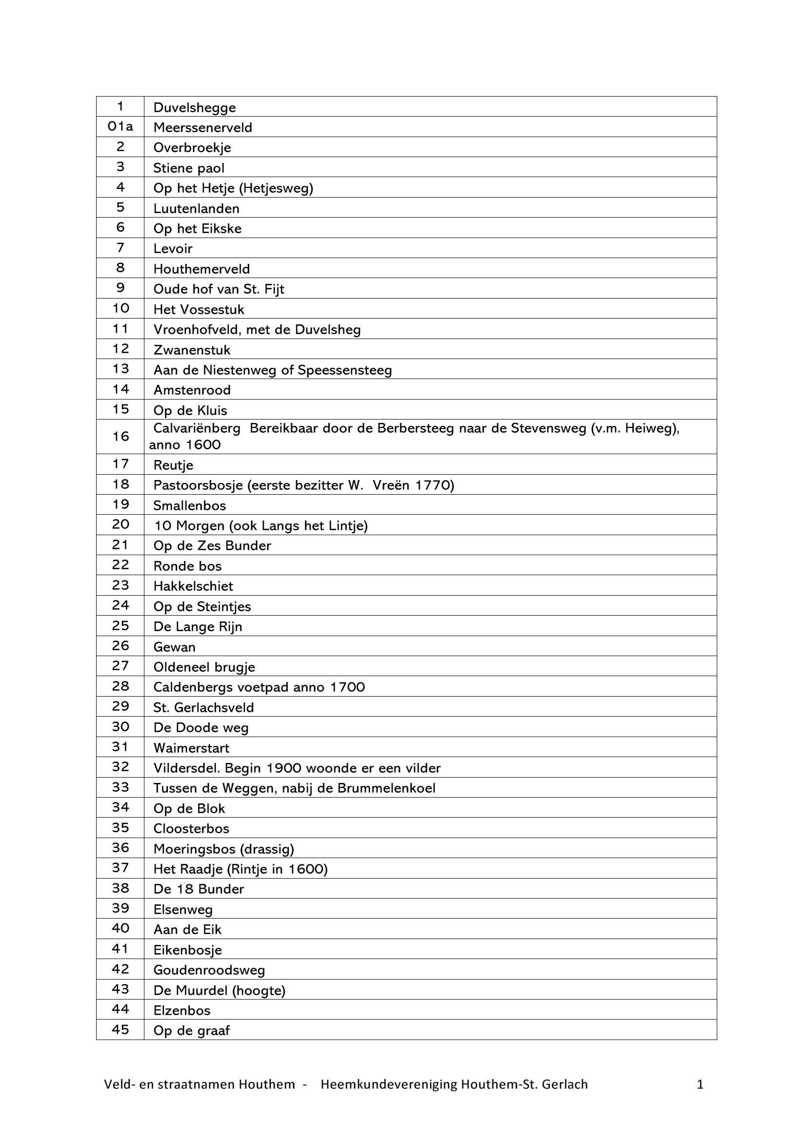 artikelen over wegen, straatnamen en veldnamen in de